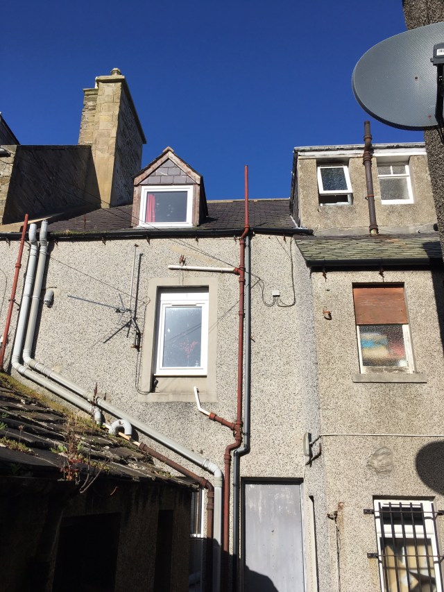 Und nochmals ein Blick von unten auf meine kleine Wohnung unter dem Dach.