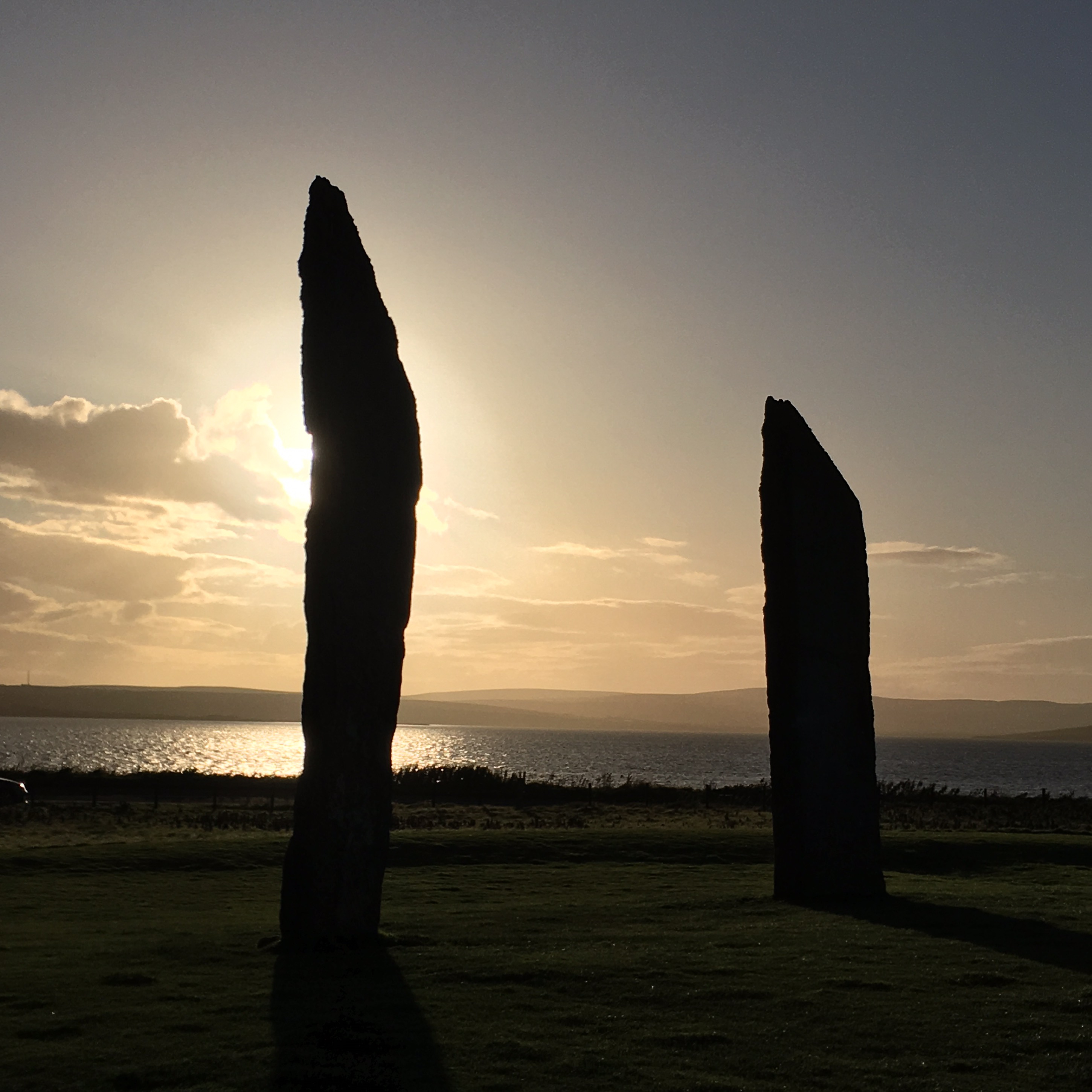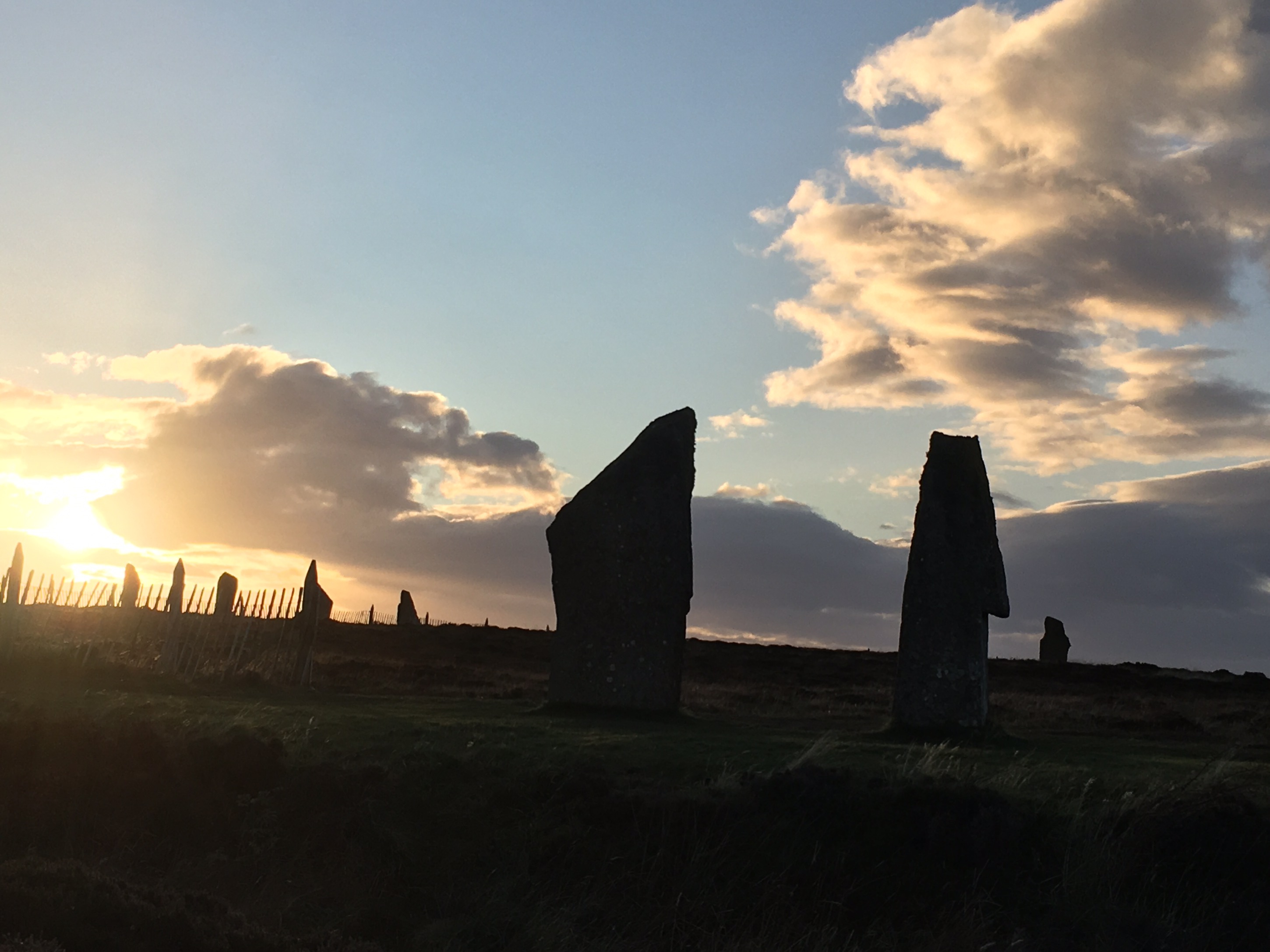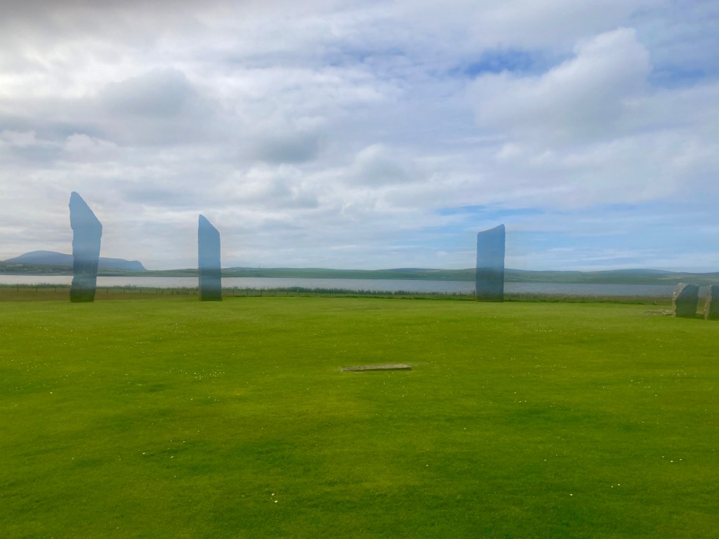 Nun, vielleicht noch nicht das Ende des Blogs, aber trotzdem ein Ende. Am letzten Abend – gestern also – nochmals per Bus und pedes zu den Steinen: Zuerst die Standing Stones of Stenness. Dort ist immer Stimmung, heute halt Abschieds.