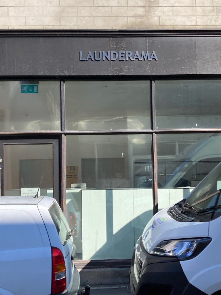 Dann am kleinen Waschsalon vorbei, der beim Coiffeur-Marketing-Büro einen Namen bestellt und halt das gekriegt hat, das er verdient. Aber die Waschmaschinen und Tumbler funktionieren.