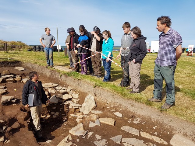 Neuer Tag, neuer Graben. In jener Woche konnte ich im Graben T mitwirken. Dieser wurde erst 2013 neu gegraben, da man darunter ein Grab vermutete. Heraus kam jedoch der grösste Abfallhaufen von Grossbritannien aus Neolithikum und Eisenzeit, und das ist bekanntlich Gold wert. Und am unteren Ende kam aber auch noch eine neue Struktur zum Vorschein, die sehr gepflegt gebaut war und vielleicht doch noch so etwas wie ein spezieller Ort war (immerhin war das Gebäude mit einer Drainage umgeben und mehrere Dutzend Quadratmeter gross und mit 2 Meter dicken Mauern versehen). Aber mehr wird man erst viel später wissen. Wahrscheinlich. Oder auch nie. Nun denn, der Trench hat seinen Ruf als Lieferant von vielen Funden und Geheimnissen. In den ersten Wochen waren doch viele Leute aktiv, die entsprechend viele Dinge fanden, darunter waren auch die amerikanischen Studentinnen. Diese kriegten deshalb viele Funde ab, während die einheimischen Studenten aus Inverness und Perth in anderen Gräben «Gartenarbeiten» verrichteten. Bis dann Matt und Kolleginnen auch mal rüber durften und er prompt nach einigen Stunden eine kleine Töpferei fand.